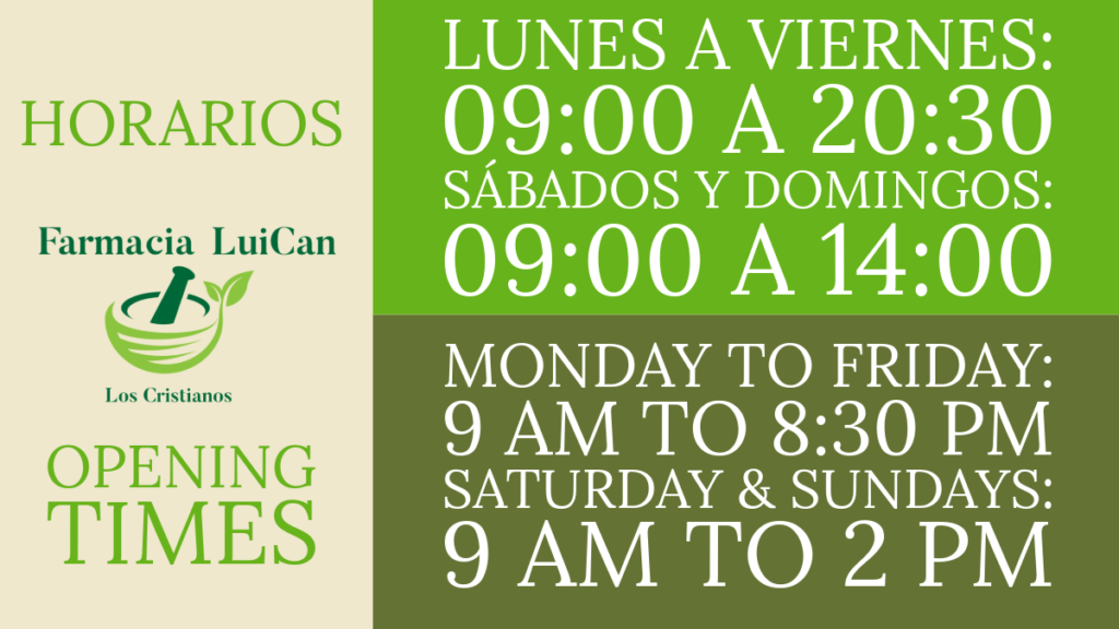 Farmacia LuiCan Avda. Juan Carlos I – Arona Gran Hotel – Local 1 – 38650 – Los Cristianos – Arona info@farmacialuican.es 922 78 74 84 630 74 96 62